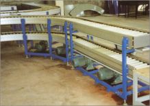 辊道式输送机利用金属辊子或包橡胶辊子的组成实现物料输送工作,分为无动力及有动力二大类,机动辊子输送机的传动形式包括链传动(单链传动、串联链传动)、皮带传动(平皮带传动、V型皮带传动)、O型皮带传动、链辊式传动等。根据用户需要可选用90°—180°弧型辊道。在使用中可以根据工艺布局,选用不同类型的辊子输送机,并应用各种辅助装置,使物料完成连续输送、积存、翻转、移行、分岔、合流、转向、提升等。配以PC程序控制系统和CPU管理系统,使您得到的将是一套完整的自动化输送、分检系统。系统配套有:移载机、C/Z型提升机、旋转台、立箱机、移行车、滚珠平台、真空吸盘机械手、停止器等,产品具有载重量大、抗冲击能力强、运转平稳、噪音小等特点,动力辊道线体速度根据用户需要可任意调节,适用于各类家用电器、柴油机、发动机、轮胎等部装和整装,重型滚道线配套于型钢生产线。